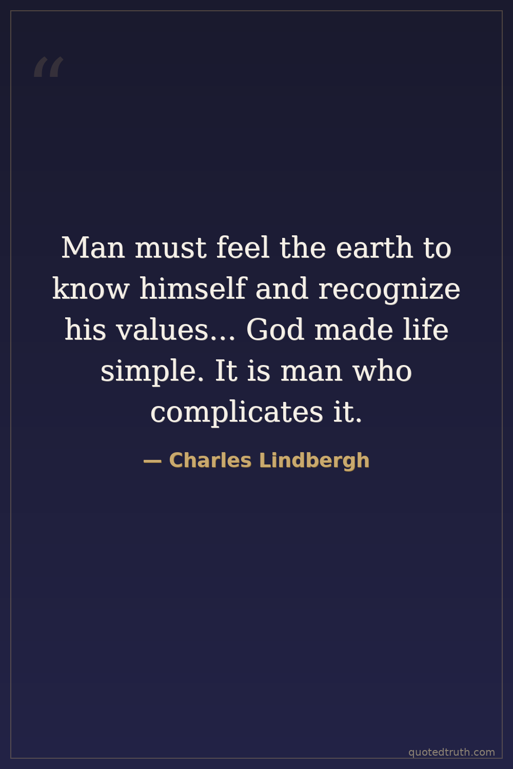 Man must feel the earth to know himself and recognize his values... God made life simple. It is man who complicates it.