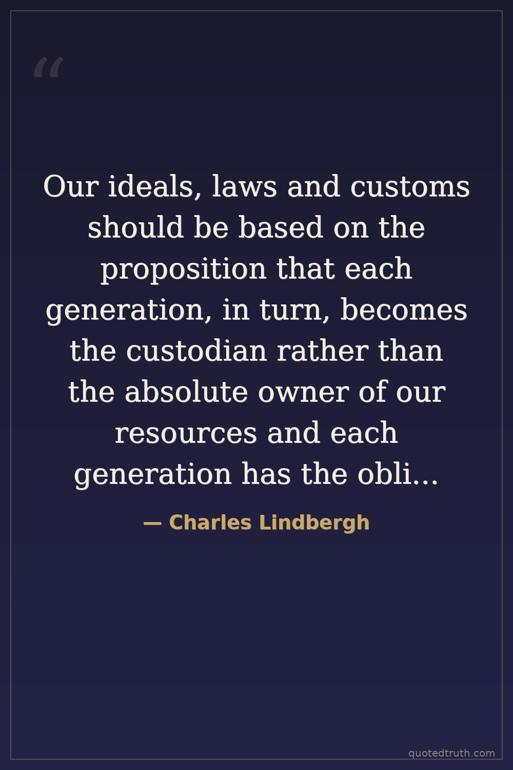 Our ideals, laws and customs should be based on the proposition that each generation, in turn, becomes the custodian rather than the absolute owner of our resources and each generation has the obligation to pass this inheritance on to the future.