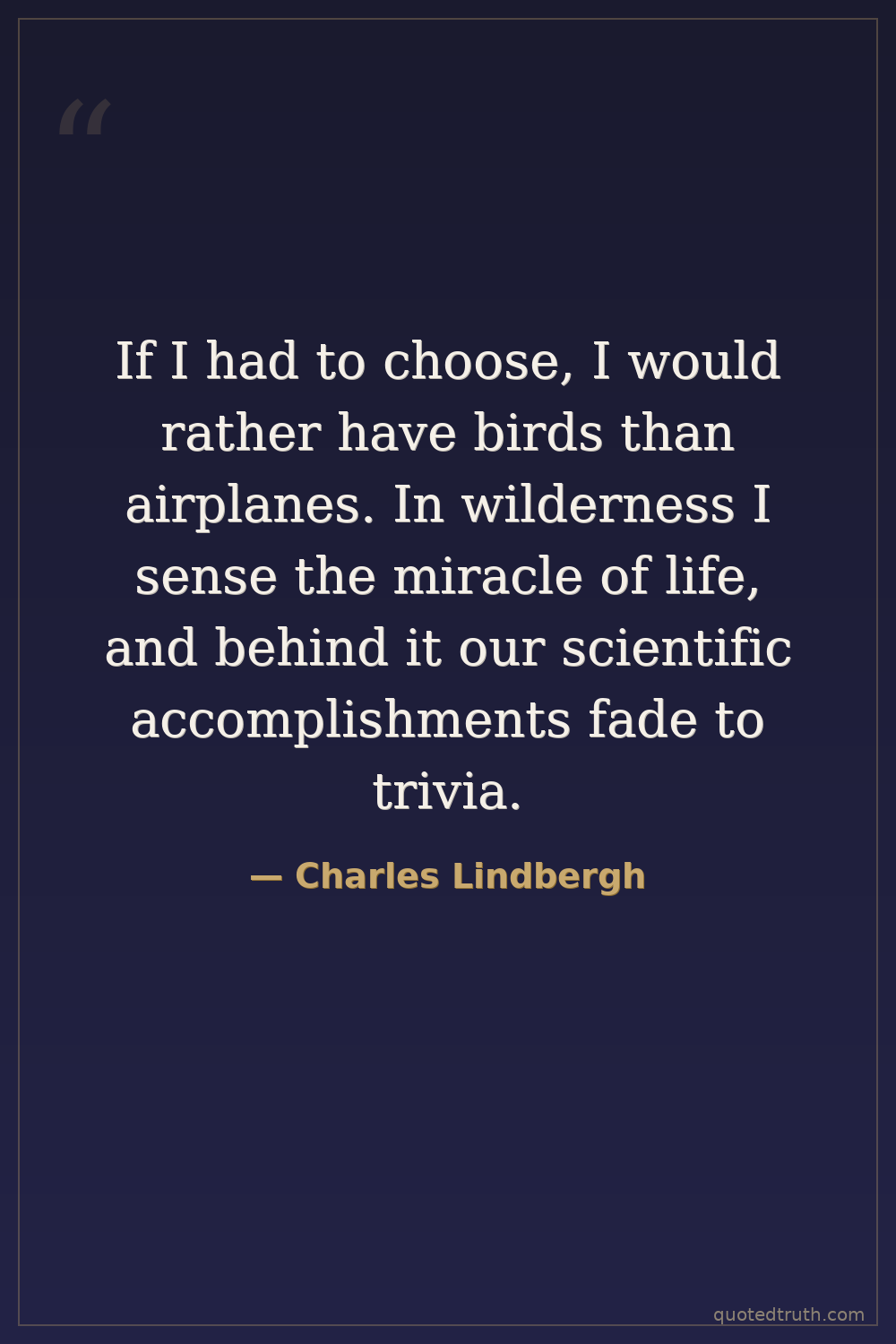 If I had to choose, I would rather have birds than airplanes. In wilderness I sense the miracle of life, and behind it our scientific accomplishments fade to trivia.