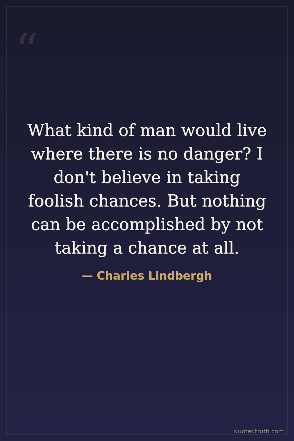What kind of man would live where there is no danger? I don't believe in taking foolish chances. But nothing can be accomplished by not taking a chance at all.