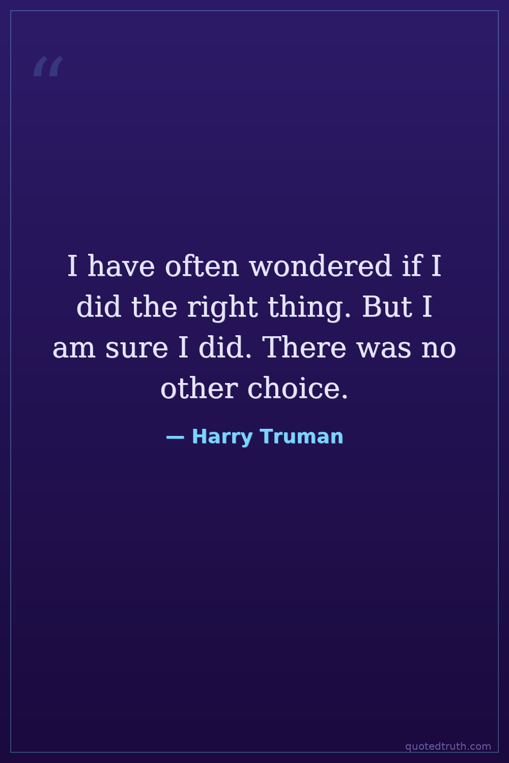I have often wondered if I did the right thing. But I am sure I did. There was no other choice.