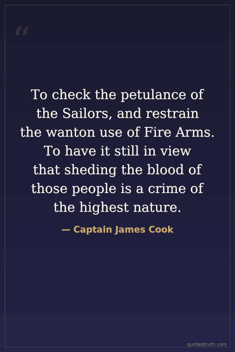 To check the petulance of the Sailors, and restrain the wanton use of Fire Arms. To have it still in view that sheding the blood of those people is a crime of the highest nature.