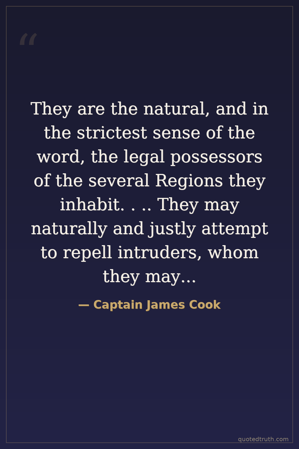 They are the natural, and in the strictest sense of the word, the legal possessors of the several Regions they inhabit. . .. They may naturally and justly attempt to repell intruders, whom they may apprehend are come to disturb them in the quiet possession of their country, whether that apprehension be well or ill founded.