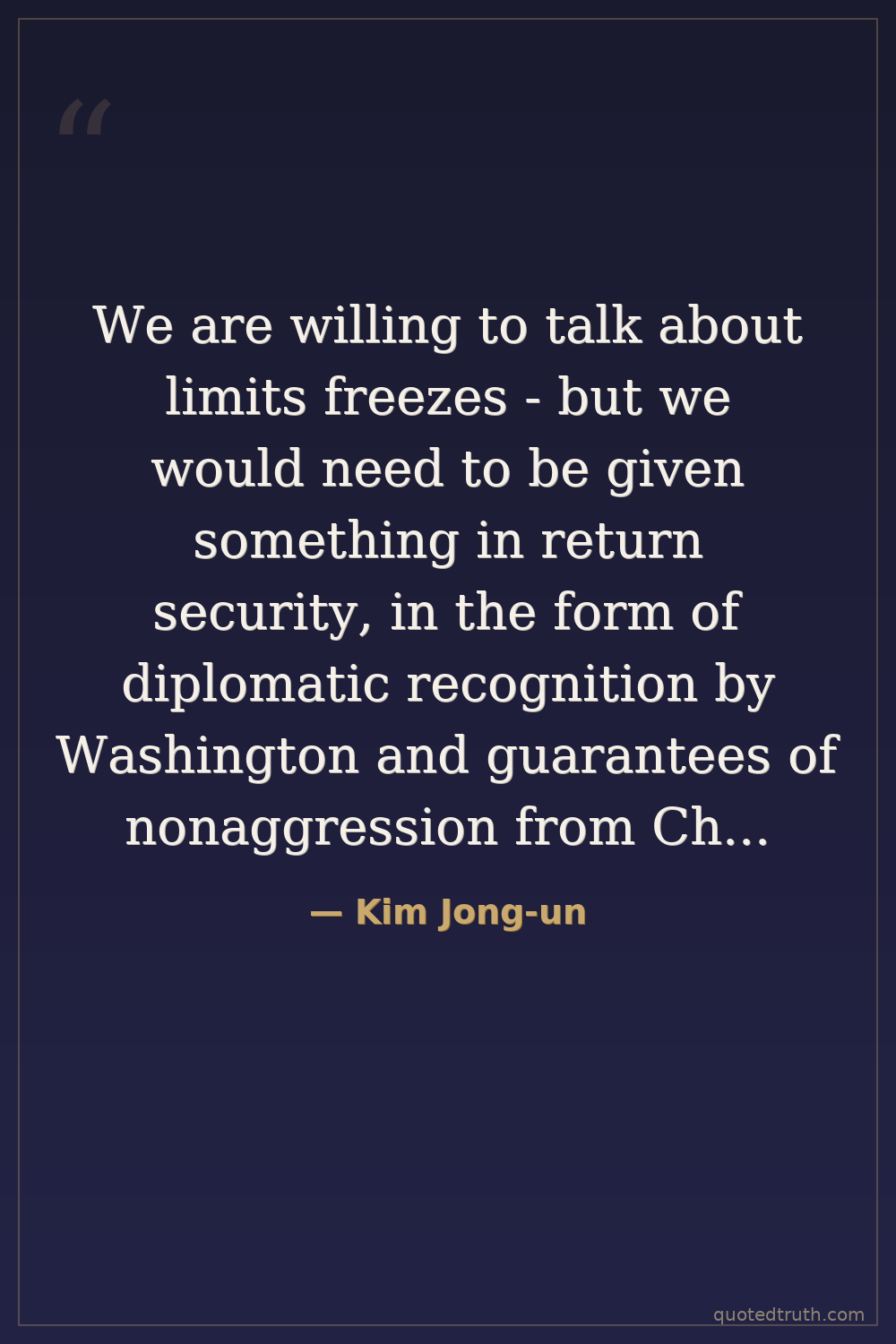 We are willing to talk about limits freezes - but we would need to be given something in return security, in the form of diplomatic recognition by Washington and guarantees of nonaggression from China, Japan and the United States.