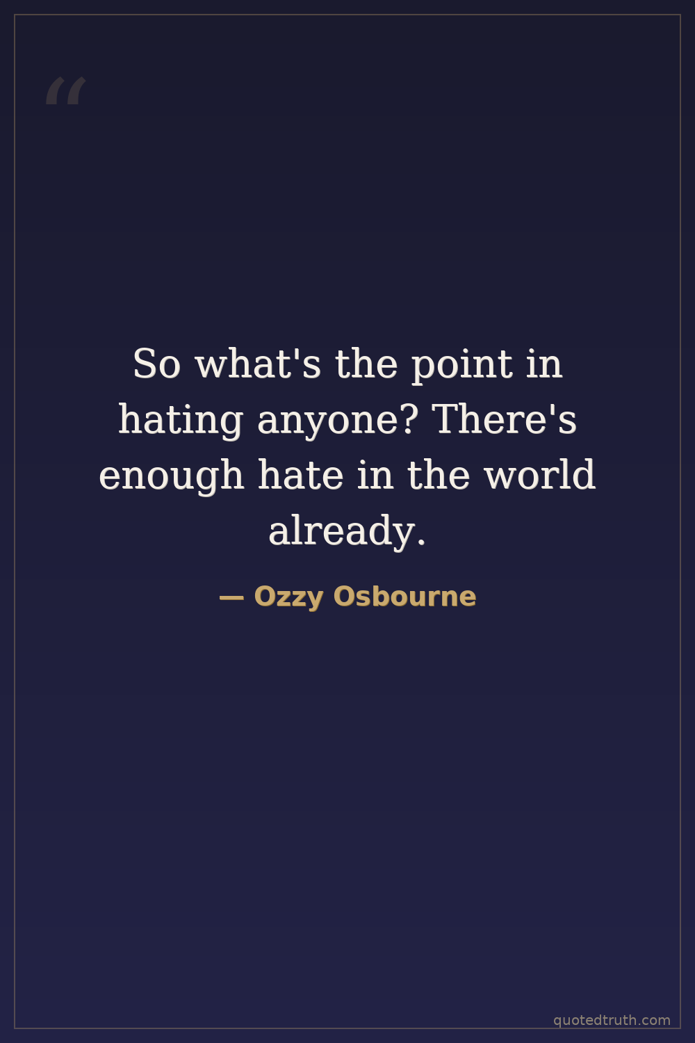 So what's the point in hating anyone? There's enough hate in the world already.
