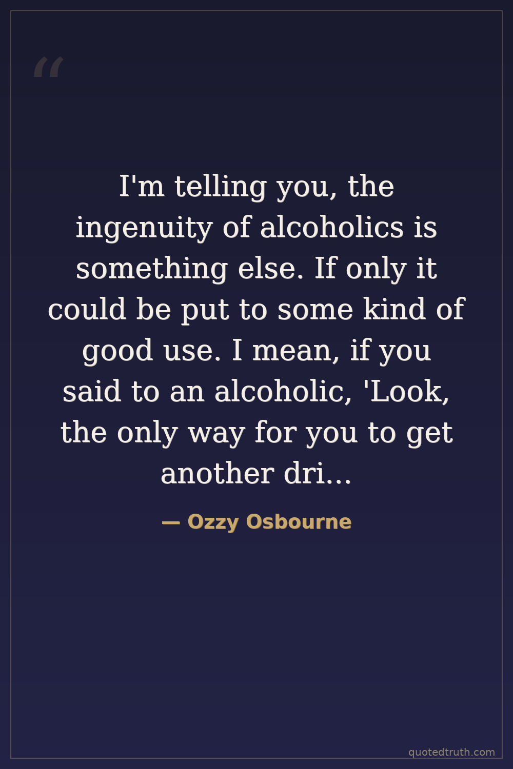 I'm telling you, the ingenuity of alcoholics is something else. If only it could be put to some kind of good use. I mean, if you said to an alcoholic, 'Look, the only way for you to get another drink is to cure cancer,' the disease would be history in five seconds.