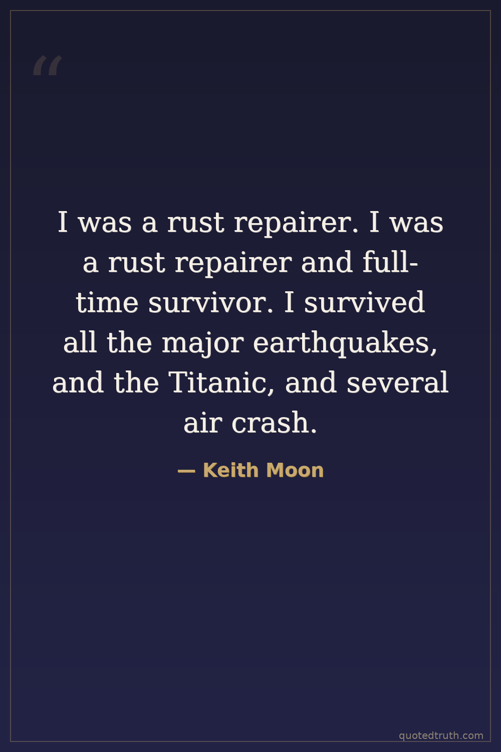 I was a rust repairer. I was a rust repairer and full-time survivor. I survived all the major earthquakes, and the Titanic, and several air crash.