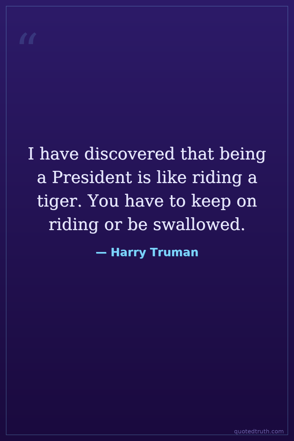 I have discovered that being a President is like riding a tiger. You have to keep on riding or be swallowed.