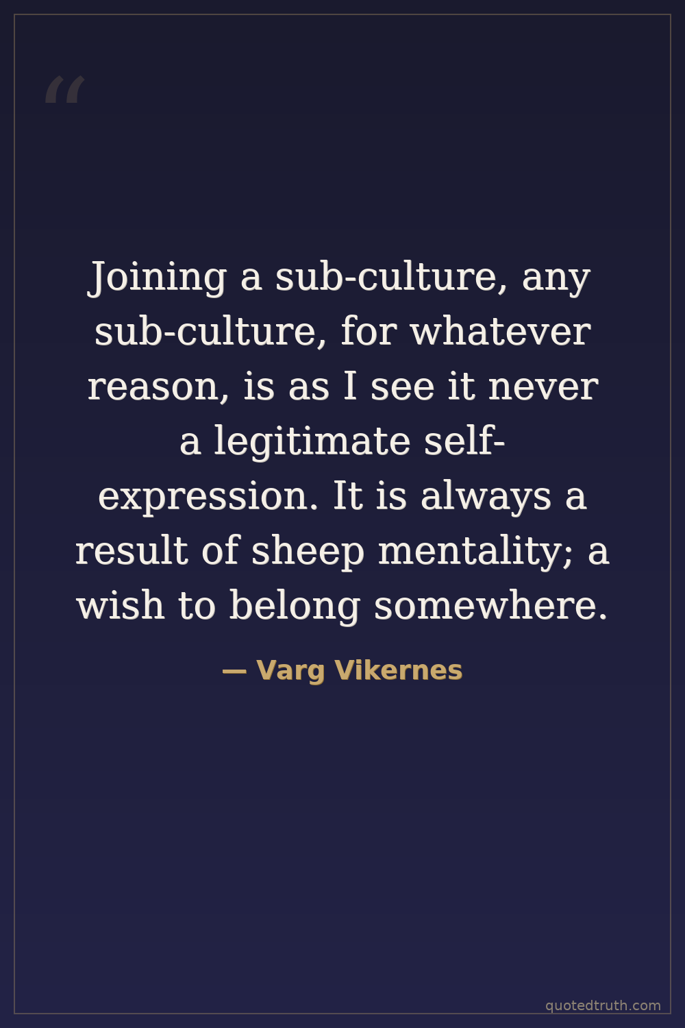 Joining a sub-culture, any sub-culture, for whatever reason, is as I see it never a legitimate self-expression. It is always a result of sheep mentality; a wish to belong somewhere.