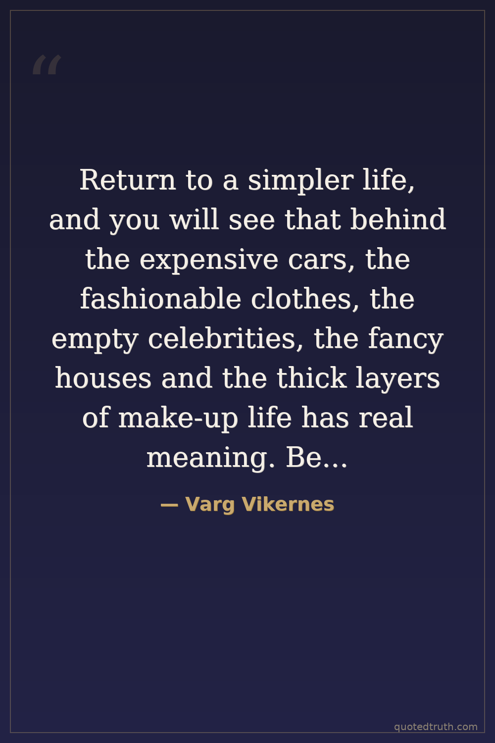 Return to a simpler life, and you will see that behind the expensive cars, the fashionable clothes, the empty celebrities, the fancy houses and the thick layers of make-up life has real meaning. Behind all the lies there is a deep well of wisdom that we can all drink from, and grow wiser, healthier and happier.