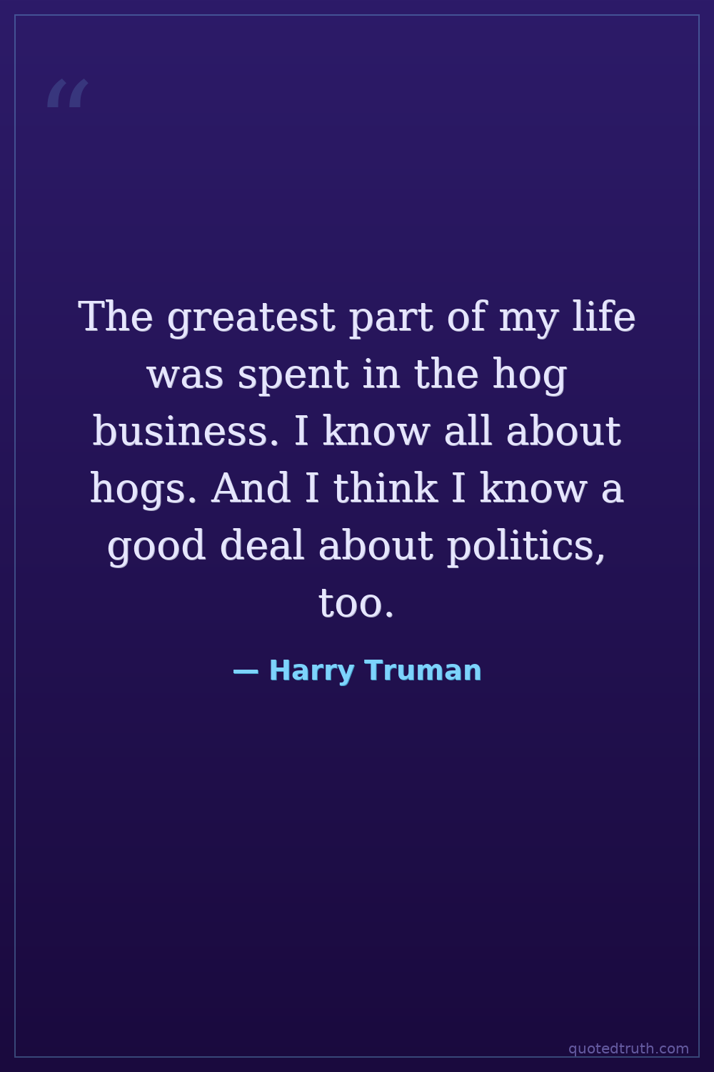 The greatest part of my life was spent in the hog business. I know all about hogs. And I think I know a good deal about politics, too.