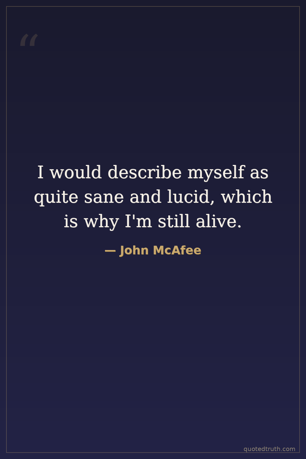 I would describe myself as quite sane and lucid, which is why I'm still alive.