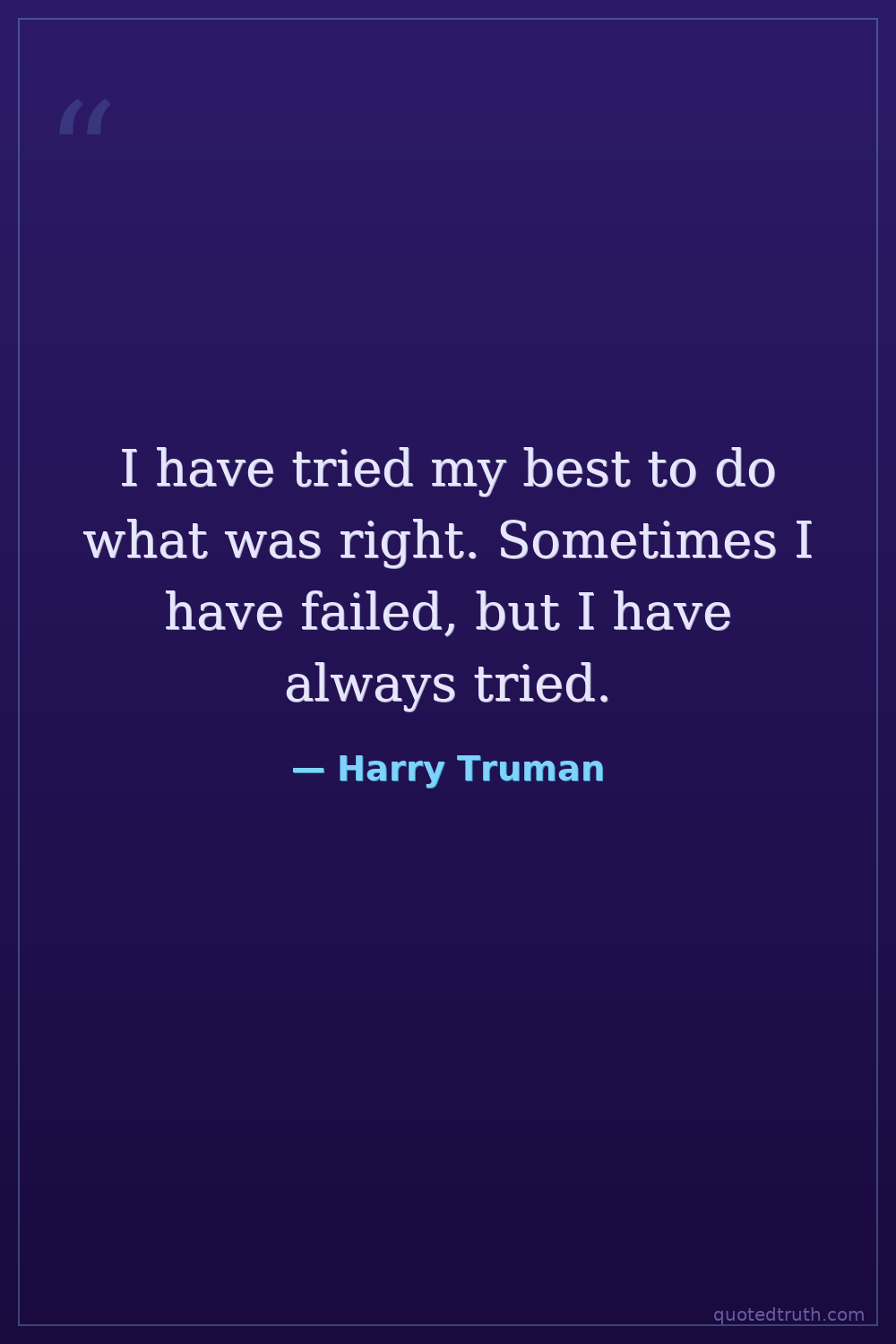 I have tried my best to do what was right. Sometimes I have failed, but I have always tried.
