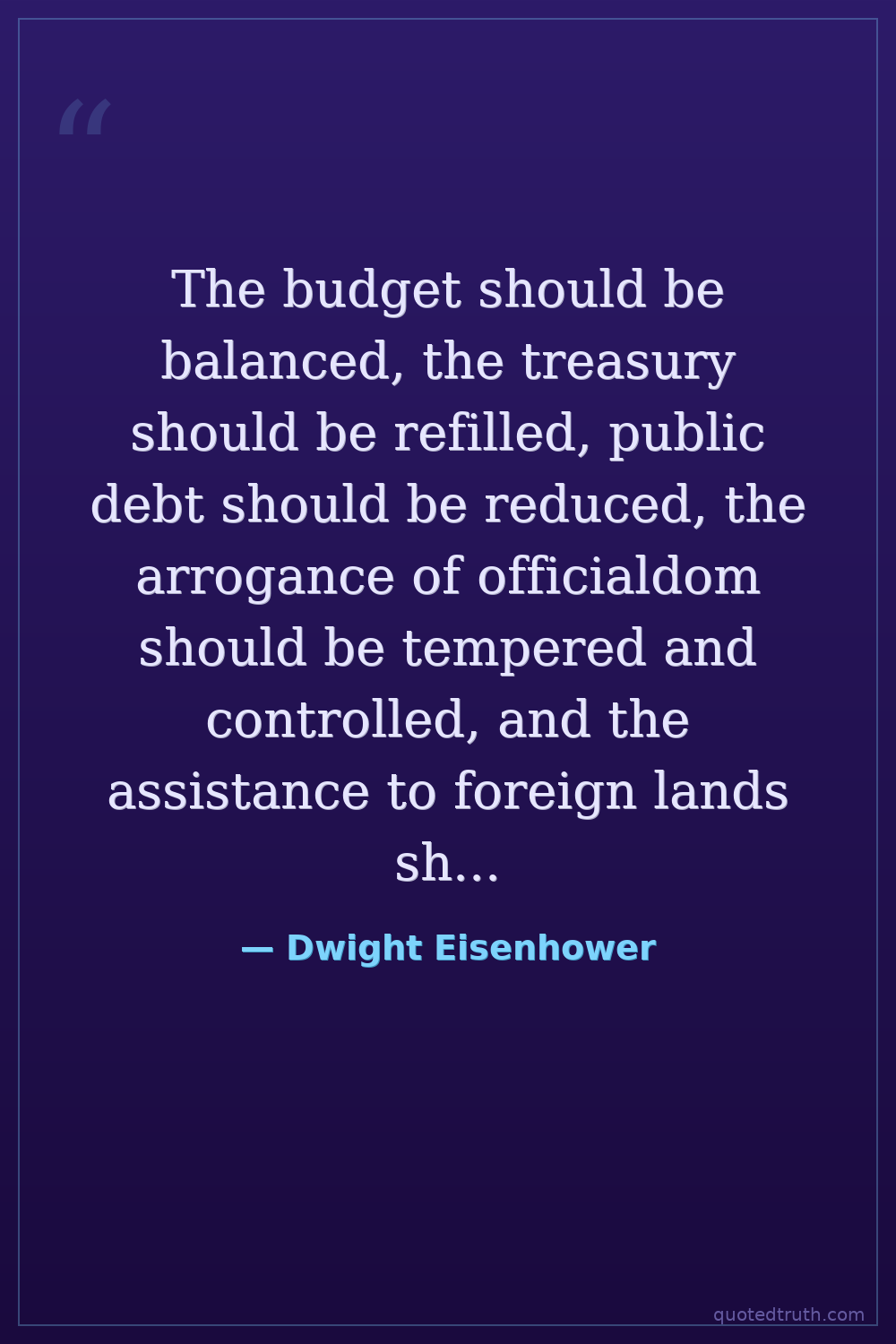 The budget should be balanced, the treasury should be refilled, public debt should be reduced, the arrogance of officialdom should be tempered and controlled, and the assistance to foreign lands should be curtailed lest Rome will become bankrupt. People must again learn to work, instead of living on public assistance.