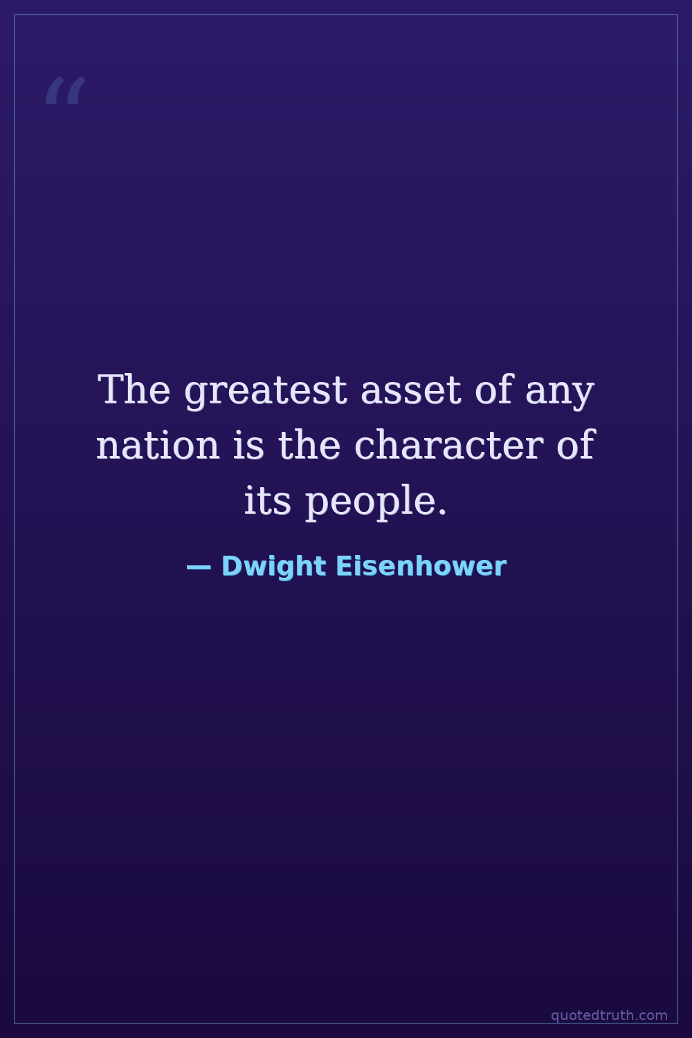 The greatest asset of any nation is the character of its people.