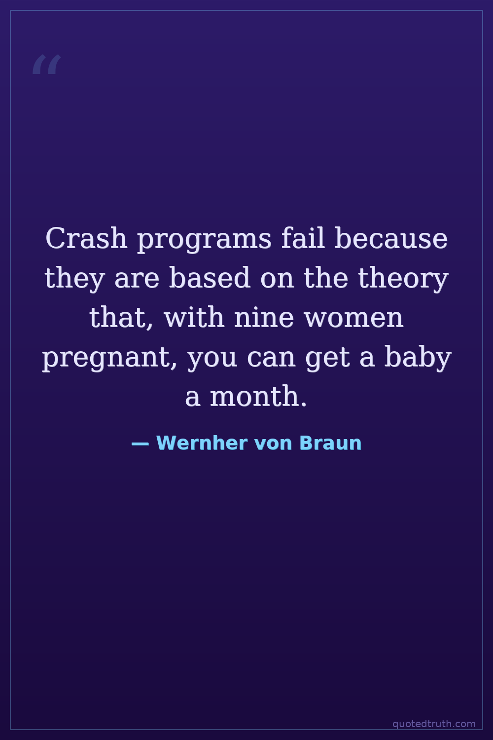Crash programs fail because they are based on the theory that, with nine women pregnant, you can get a baby a month.