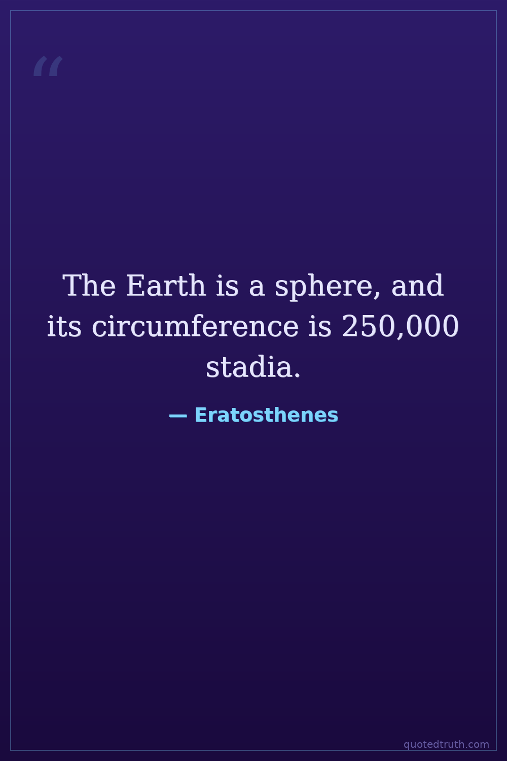 "Eratosthenes refused to accept the popular understanding of any subject and sought always to find out the truth of a matter for himself."