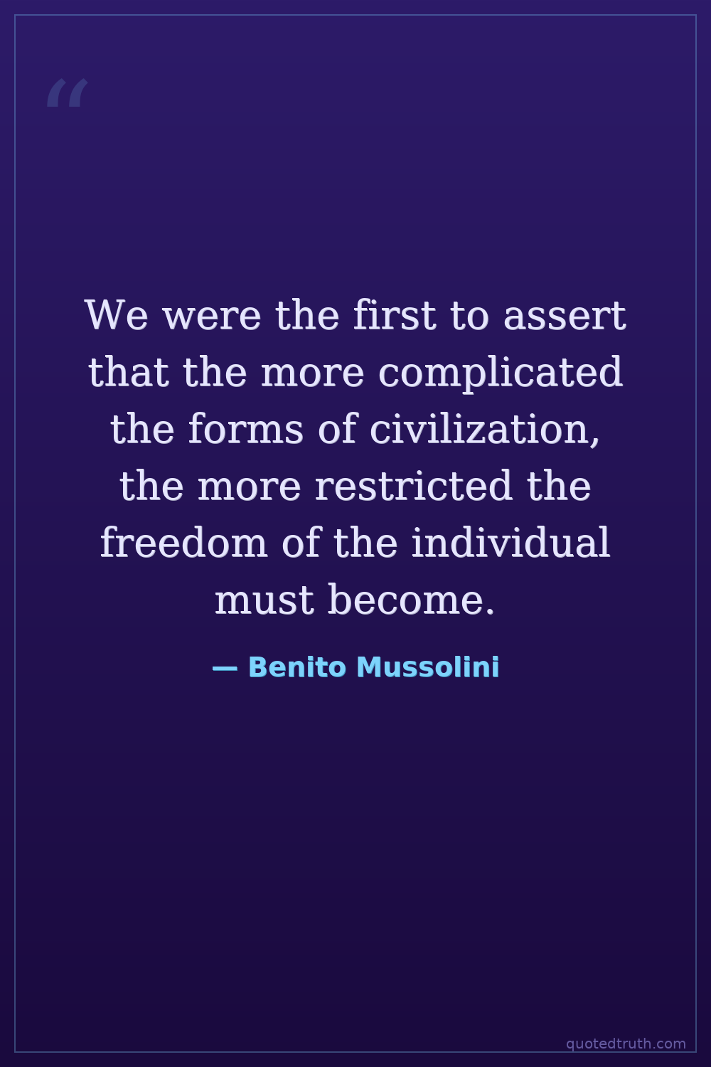 We were the first to assert that the more complicated the forms of civilization, the more restricted the freedom of the individual must become.