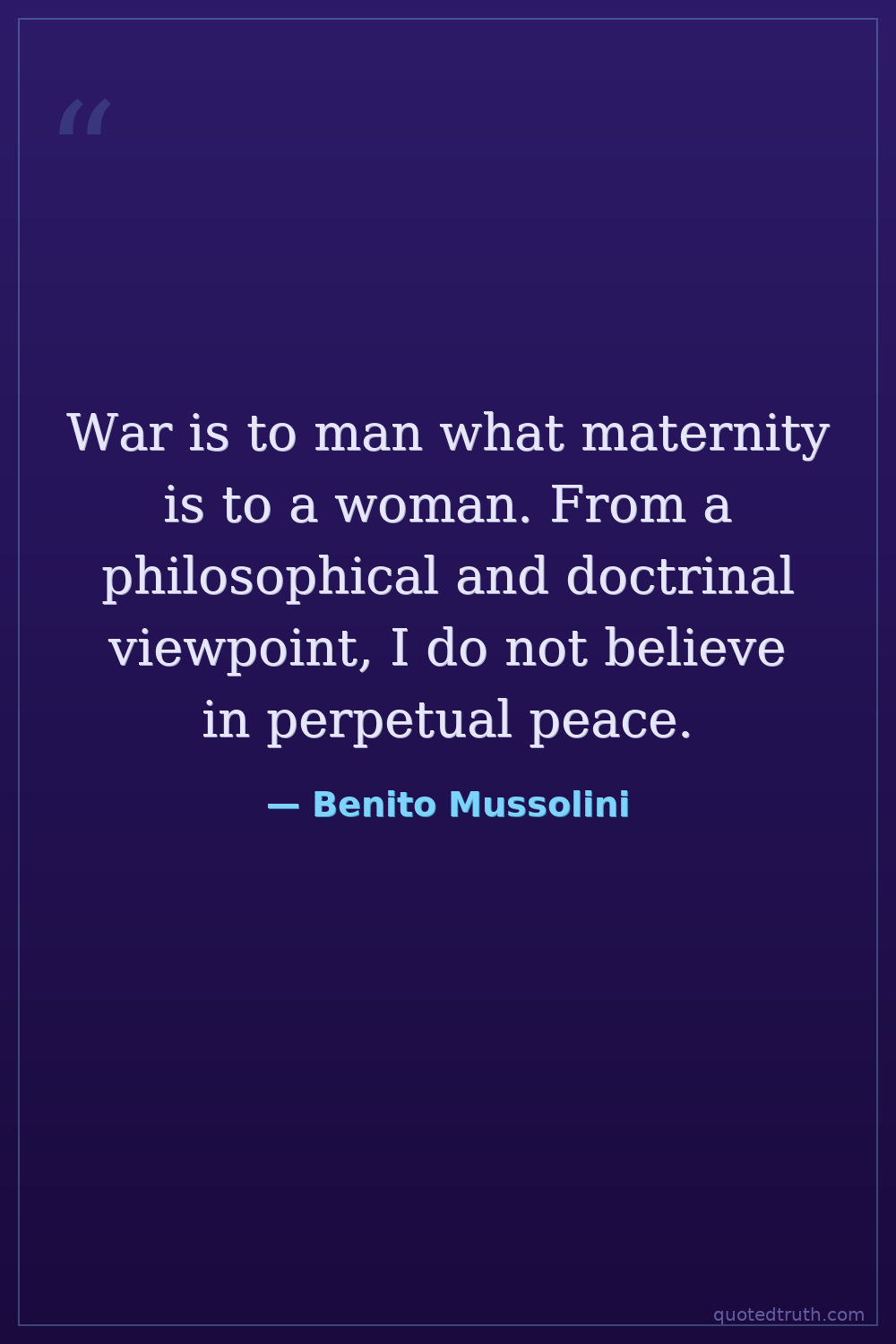 War is to man what maternity is to a woman. From a philosophical and doctrinal viewpoint, I do not believe in perpetual peace.