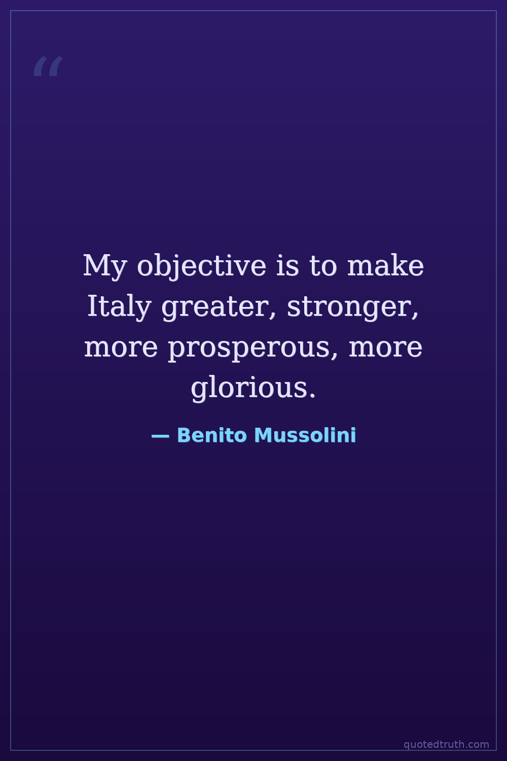 My objective is to make Italy greater, stronger, more prosperous, more glorious.
