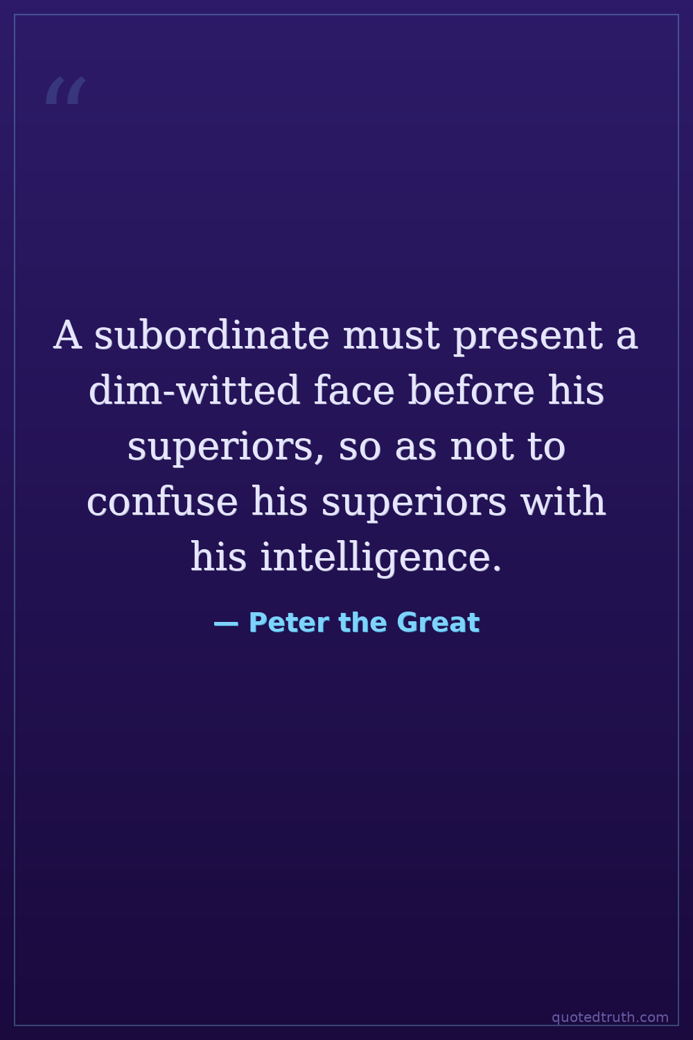 A subordinate must present a dim-witted face before his superiors, so as not to confuse his superiors with his intelligence.