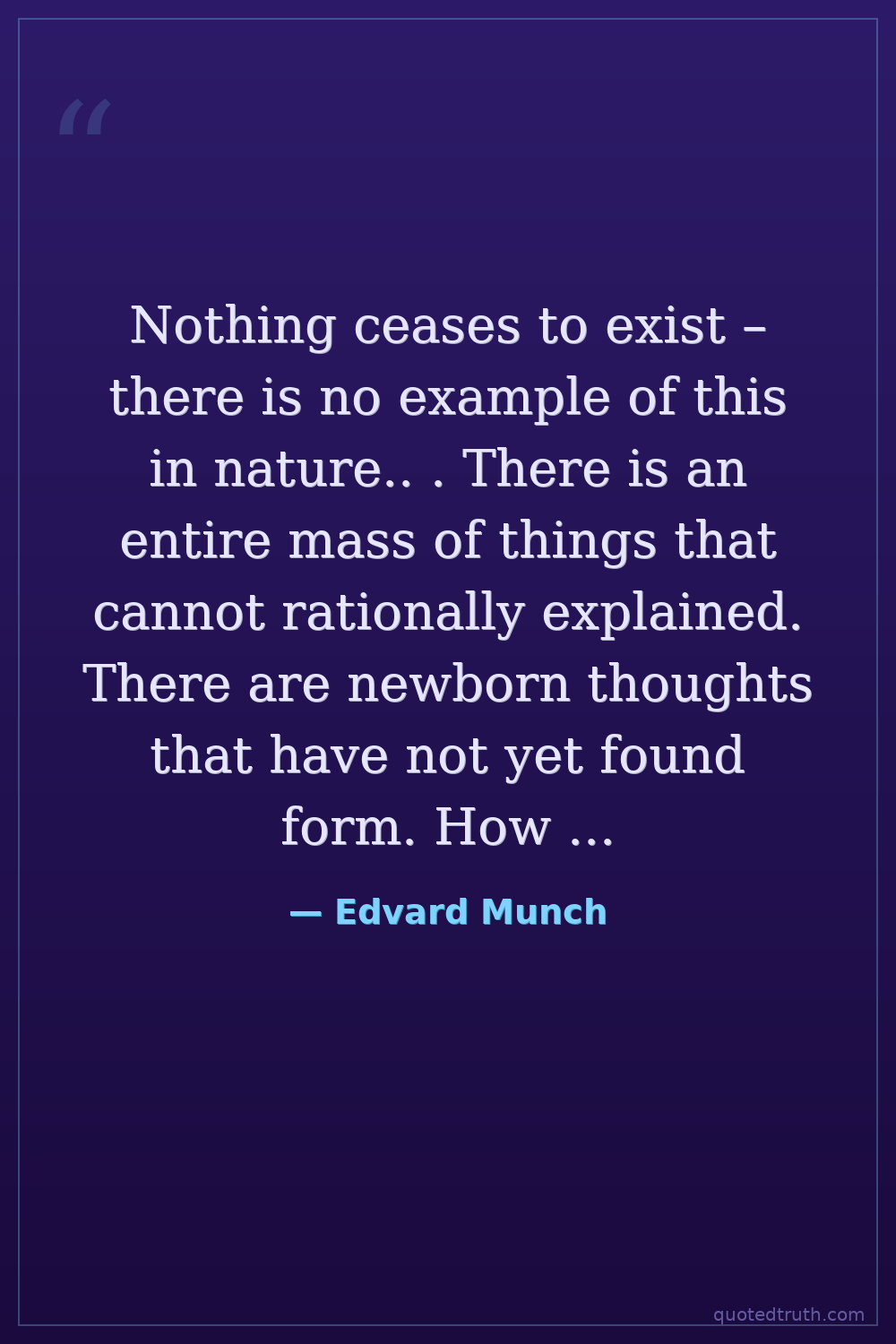 Nothing ceases to exist – there is no example of this in nature.. . There is an entire mass of things that cannot rationally explained. There are newborn thoughts that have not yet found form. How foolish to deny the existence of the soul. — Edvard Munch Modern The Scream