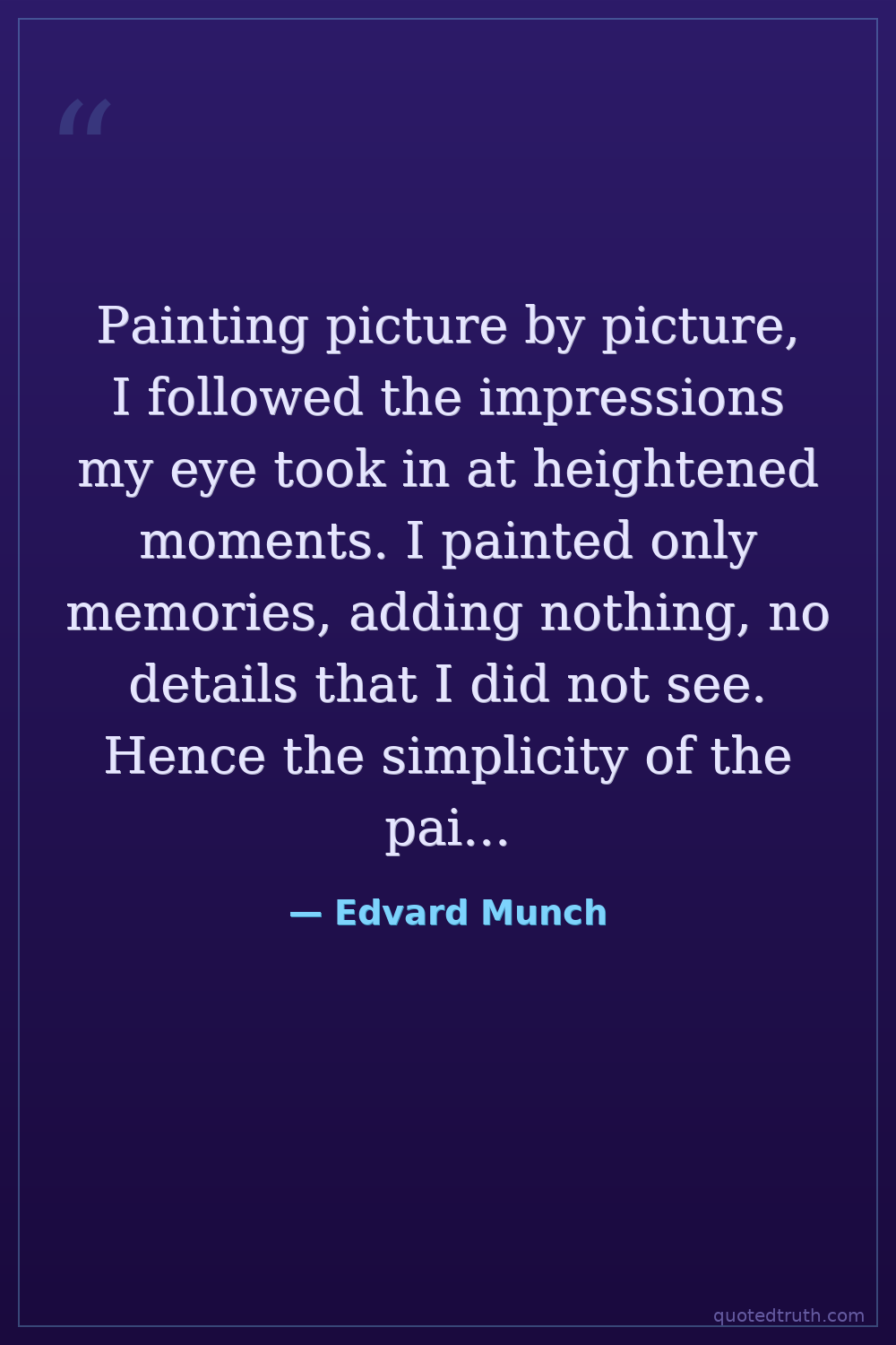 Describing his method of painting from memory and emotional impressions, leading to simplified forms.