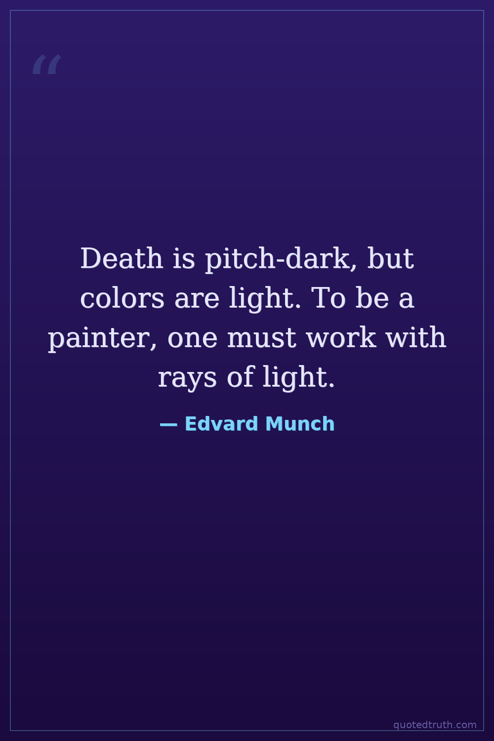 Death is pitch-dark, but colors are light. To be a painter, one must work with rays of light.