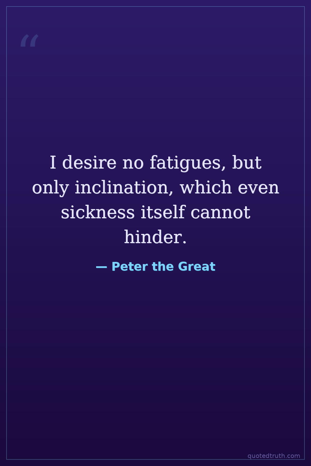 I desire no fatigues, but only inclination, which even sickness itself cannot hinder.