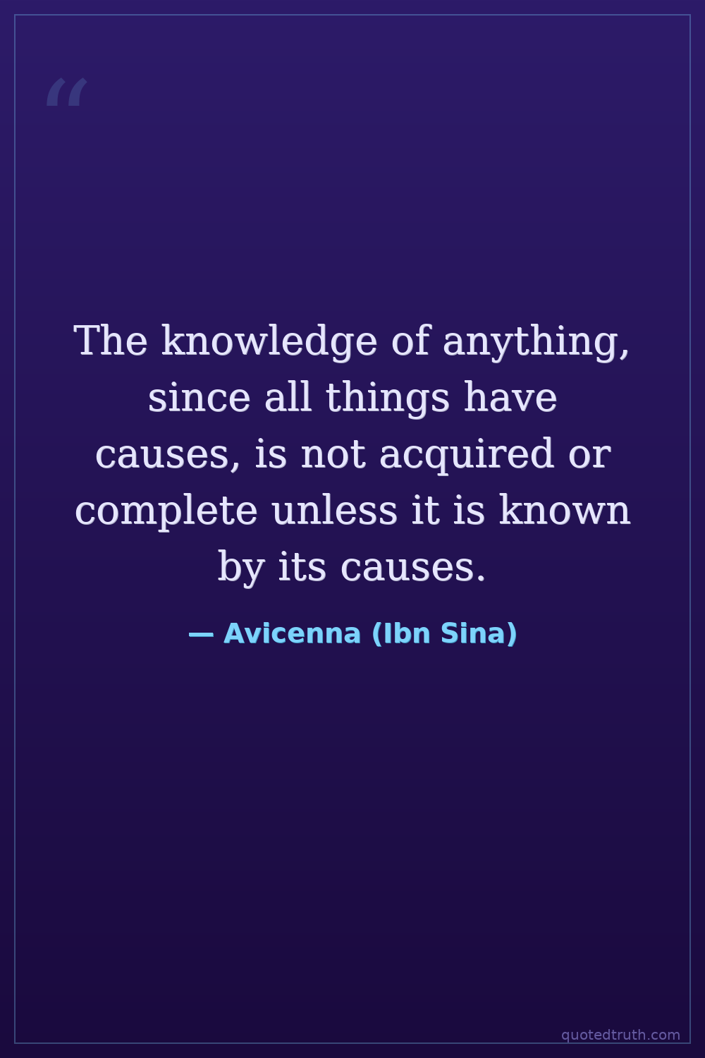 The knowledge of anything, since all things have causes, is not acquired or complete unless it is known by its causes.