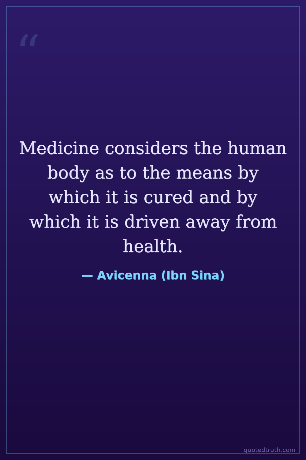 Medicine considers the human body as to the means by which it is cured and by which it is driven away from health.