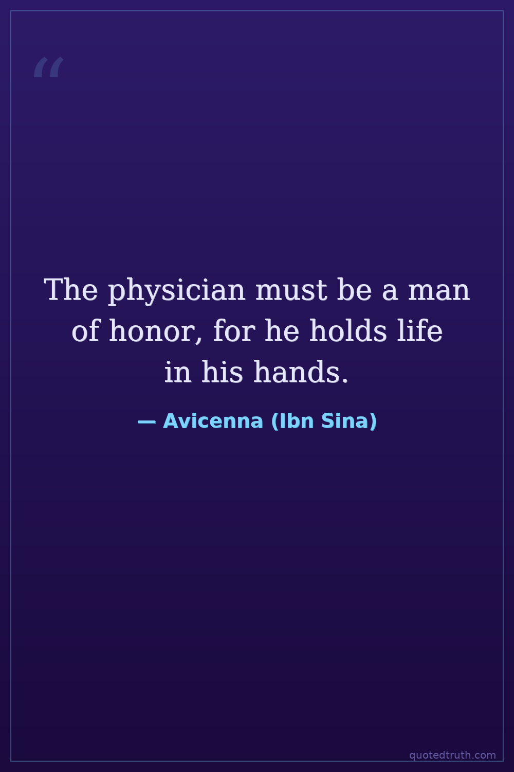 The physician must be a man of honor, for he holds life in his hands.