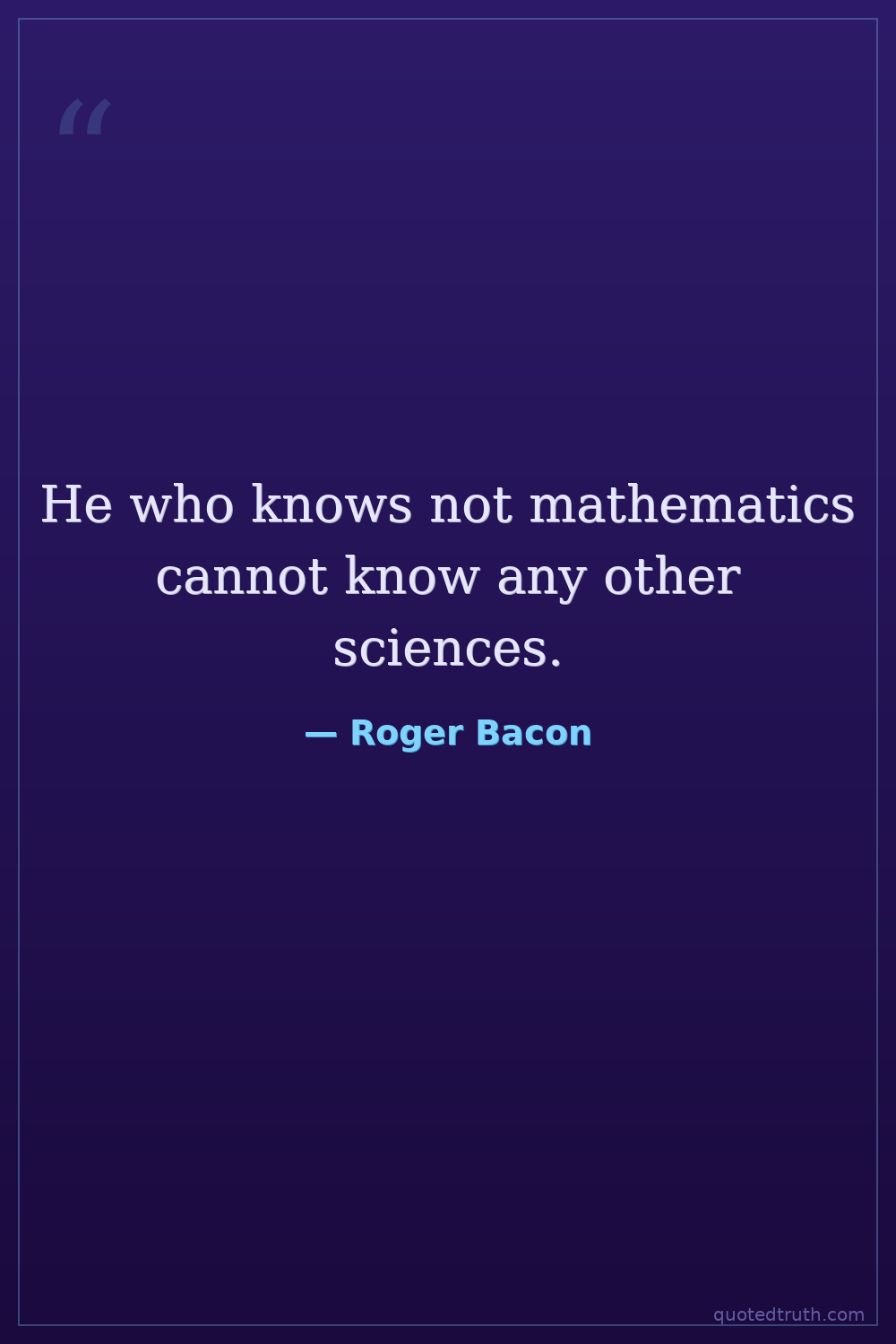 He who knows not mathematics cannot know any other sciences.