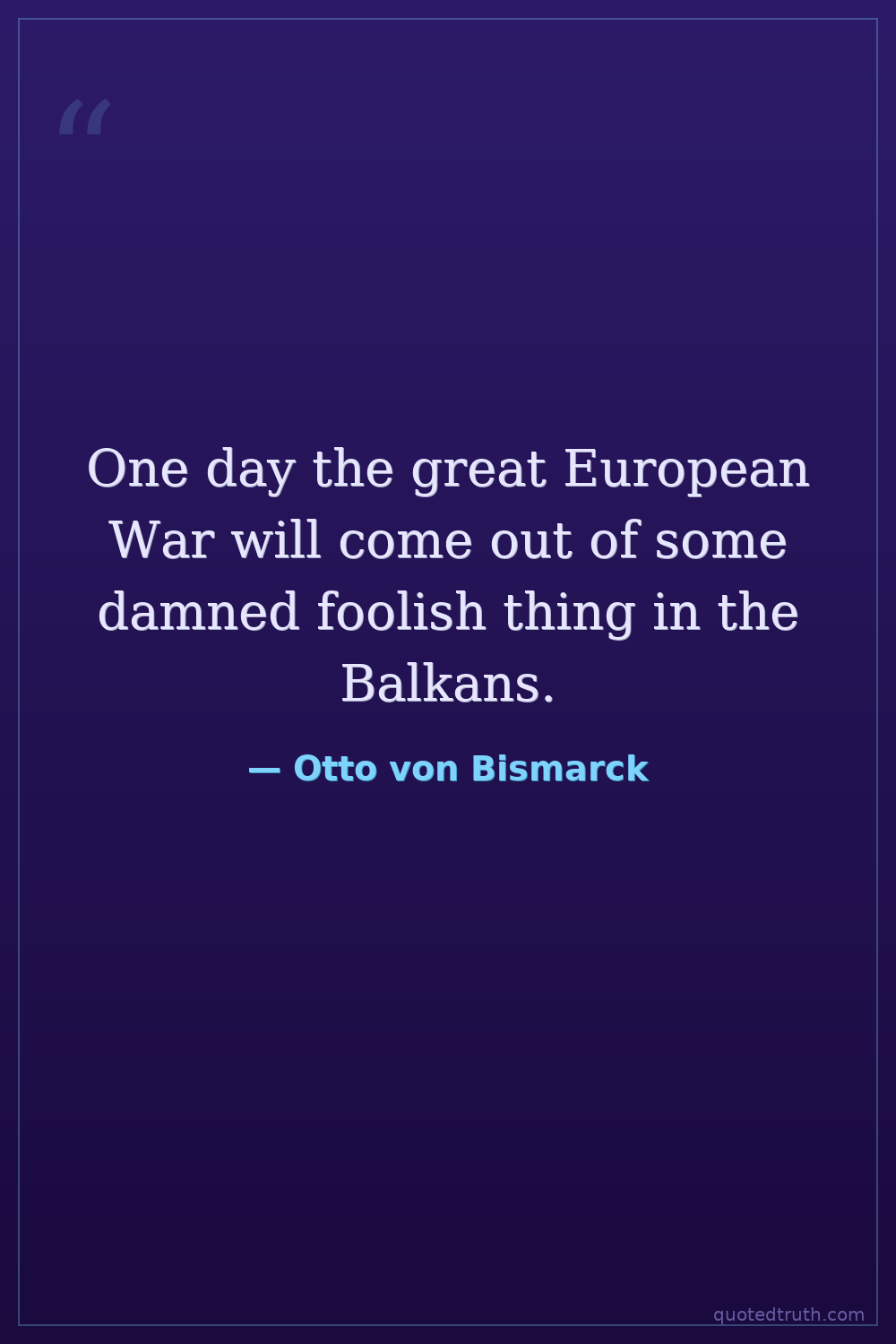 One day the great European War will come out of some damned foolish thing in the Balkans.