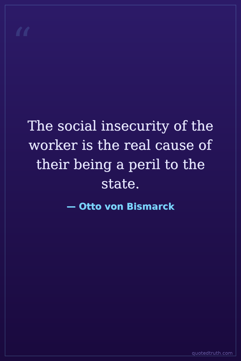 The social insecurity of the worker is the real cause of their being a peril to the state.