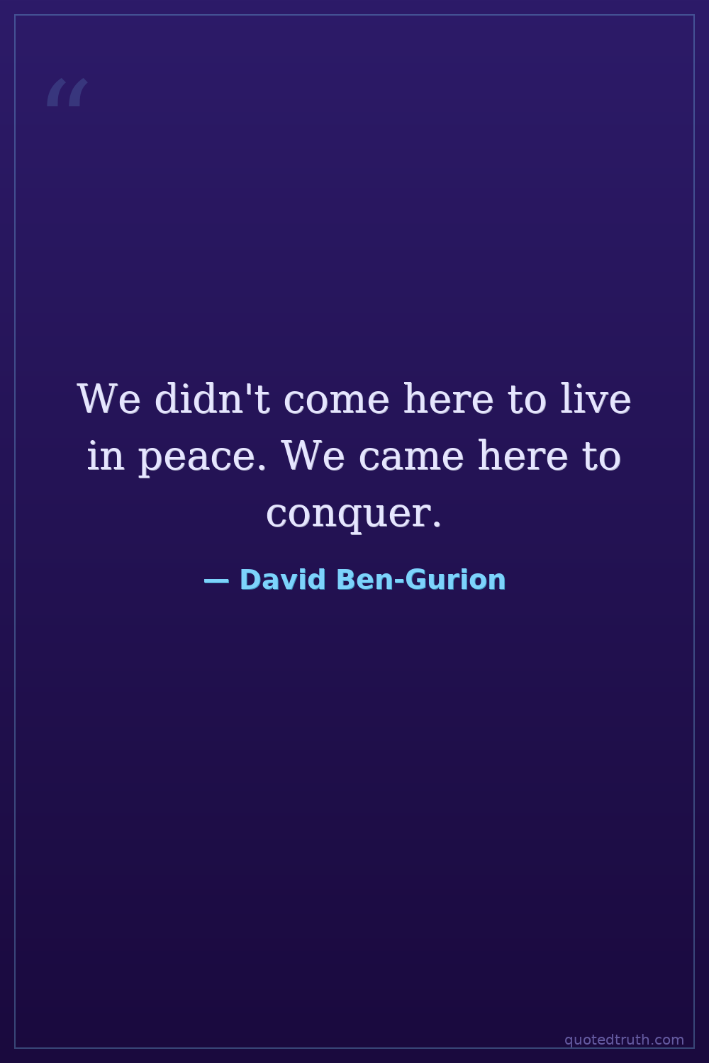 We didn't come here to live in peace. We came here to conquer.