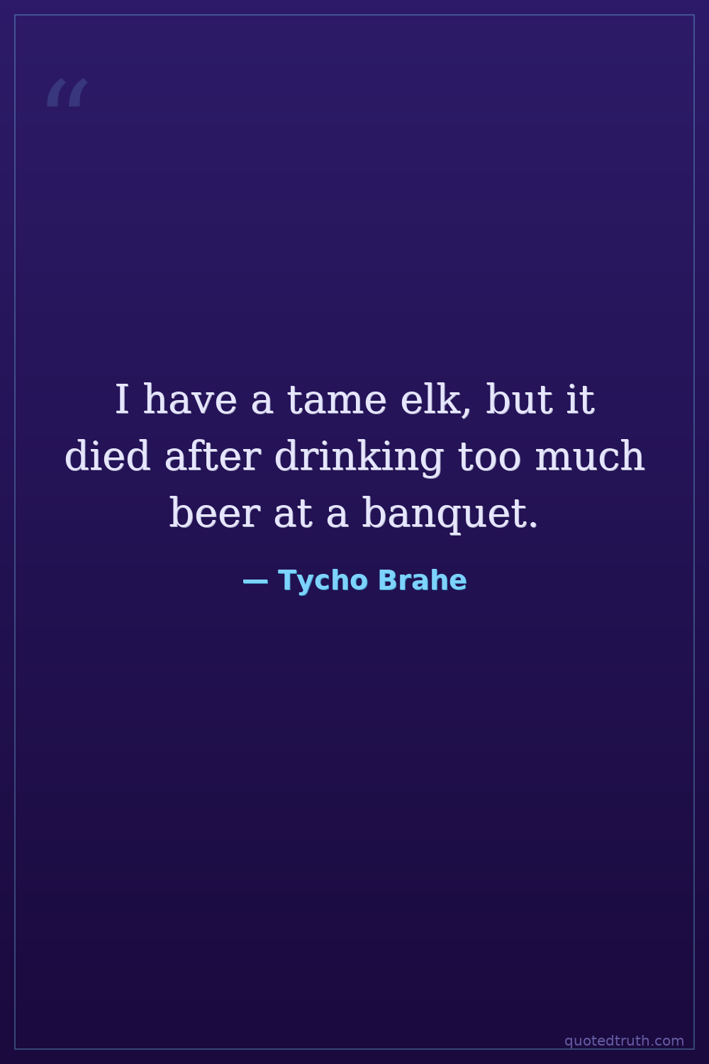 I have a tame elk, but it died after drinking too much beer at a banquet.