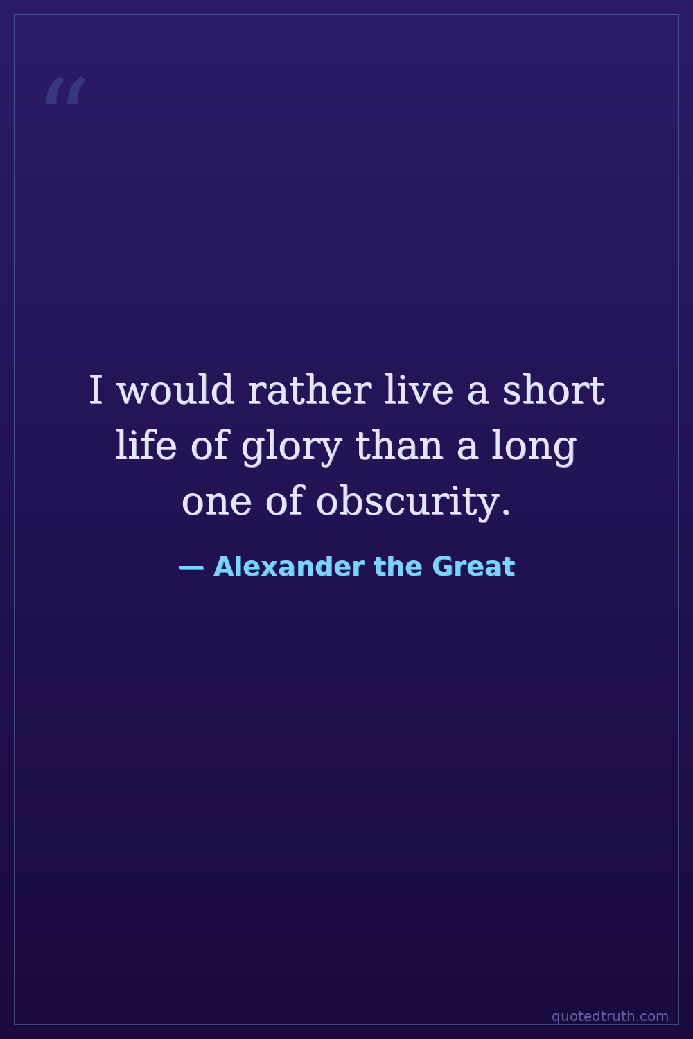 I would rather live a short life of glory than a long one of obscurity.