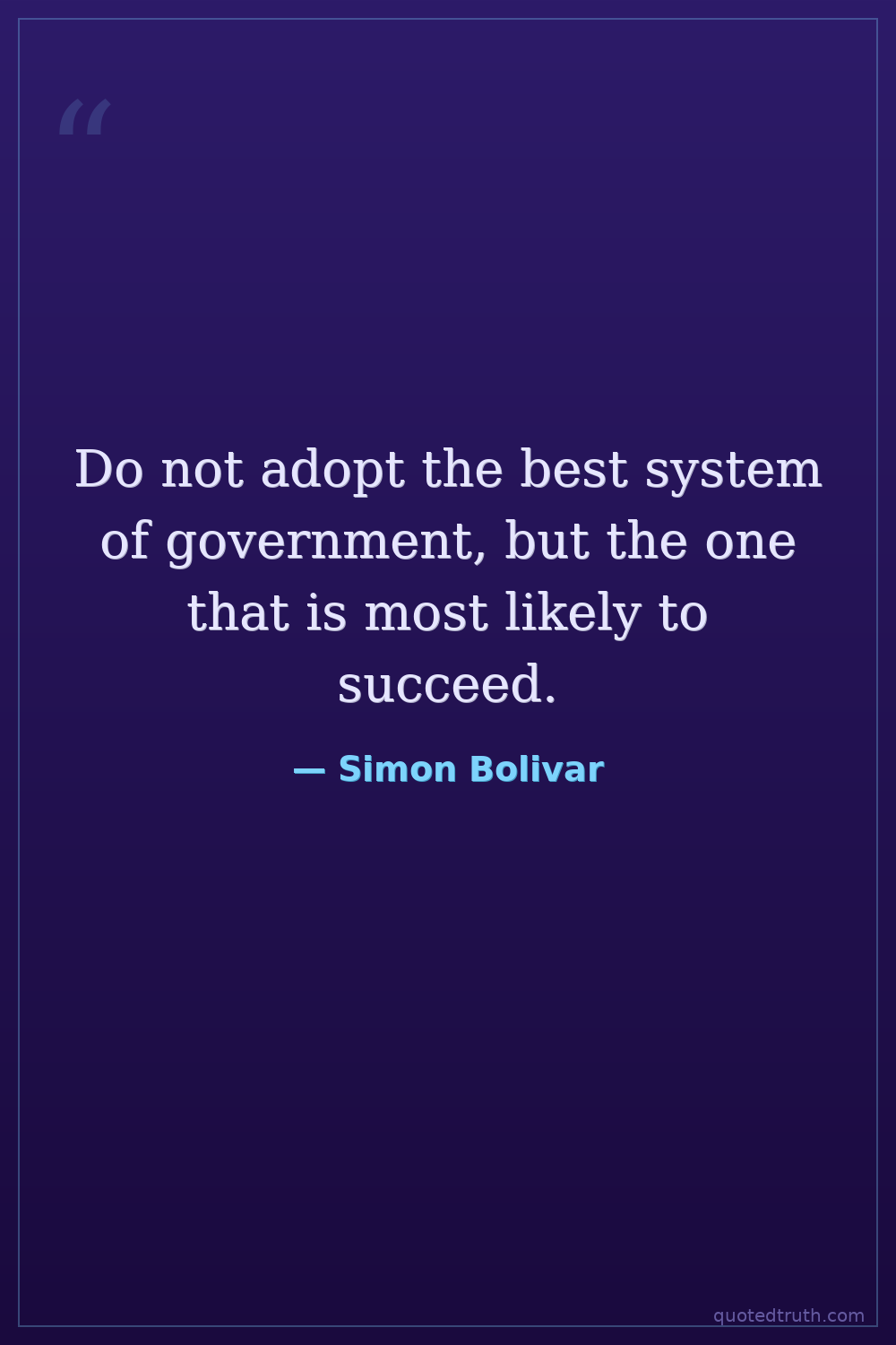 Do not adopt the best system of government, but the one that is most likely to succeed.