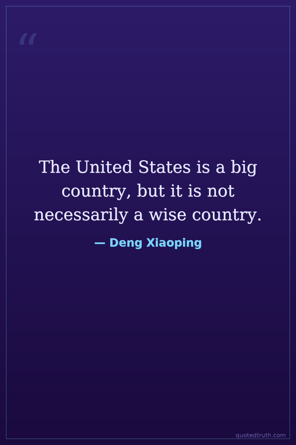 The United States is a big country, but it is not necessarily a wise country.