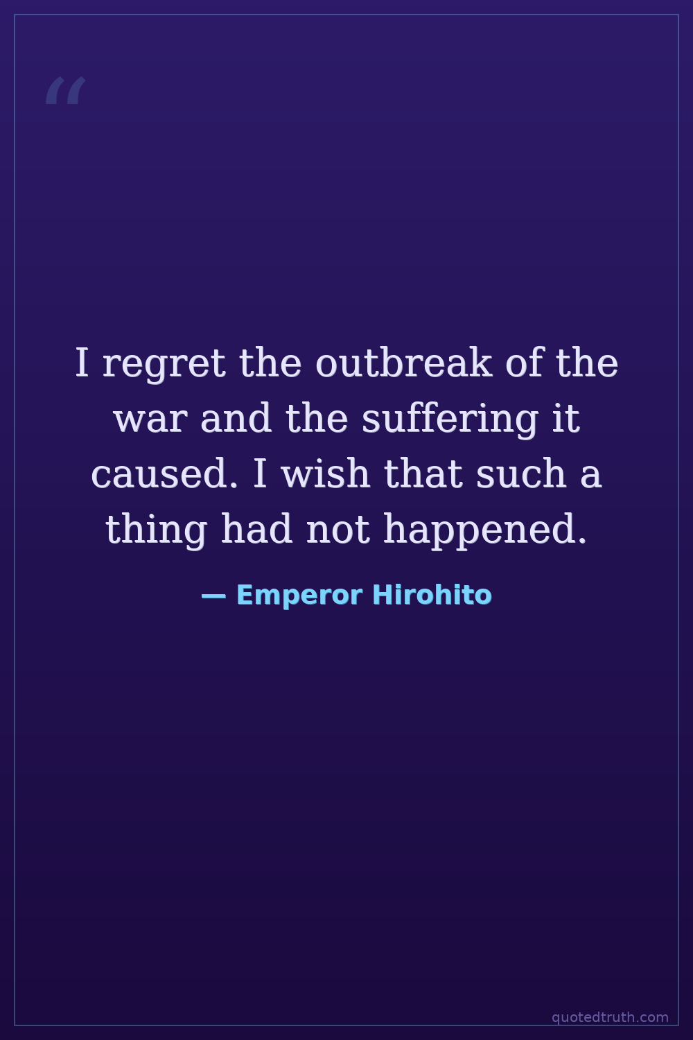 I regret the outbreak of the war and the suffering it caused. I wish that such a thing had not happened.