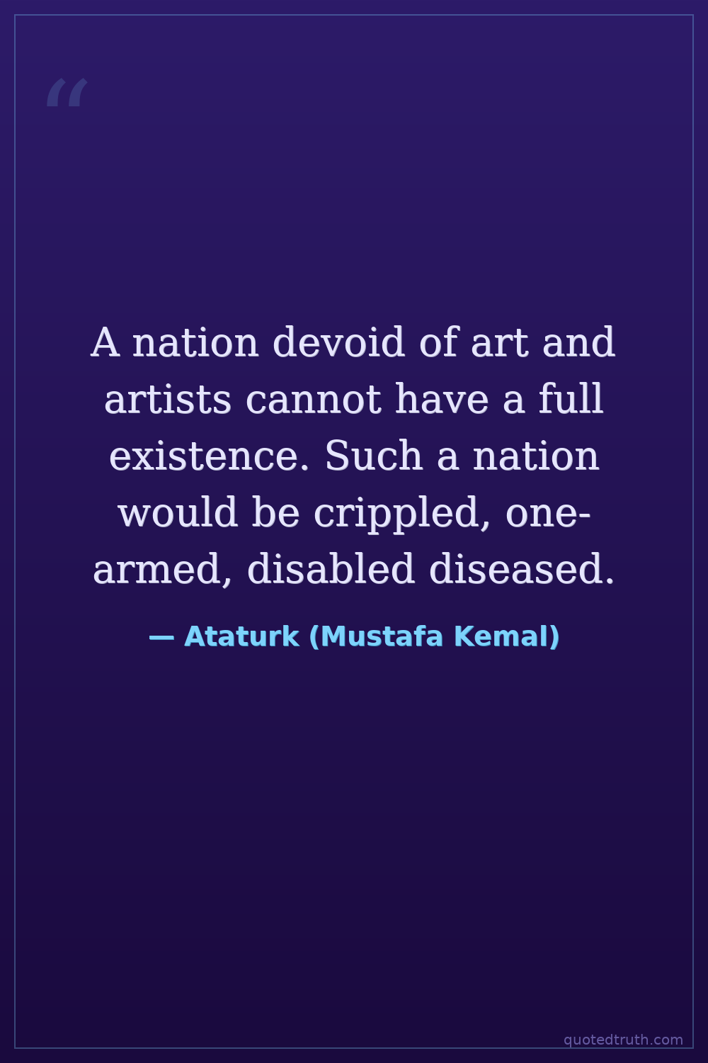 A nation devoid of art and artists cannot have a full existence. Such a nation would be crippled, one-armed, disabled diseased.