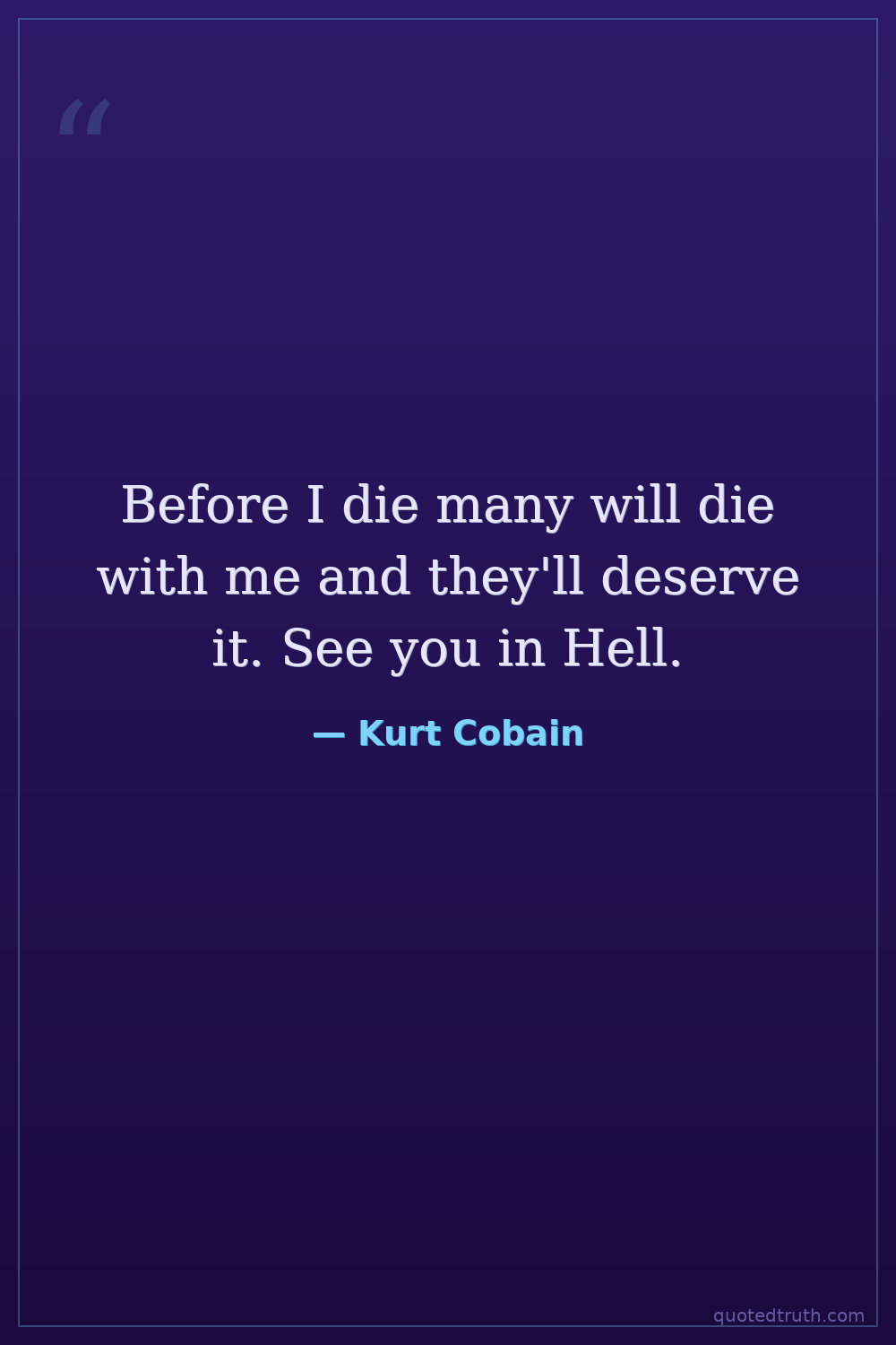 Before I die many will die with me and they'll deserve it. See you in Hell.