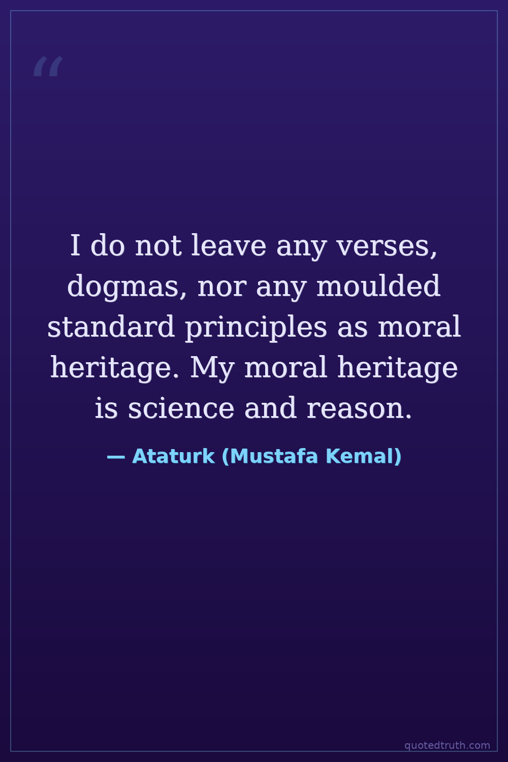I do not leave any verses, dogmas, nor any moulded standard principles as moral heritage. My moral heritage is science and reason.