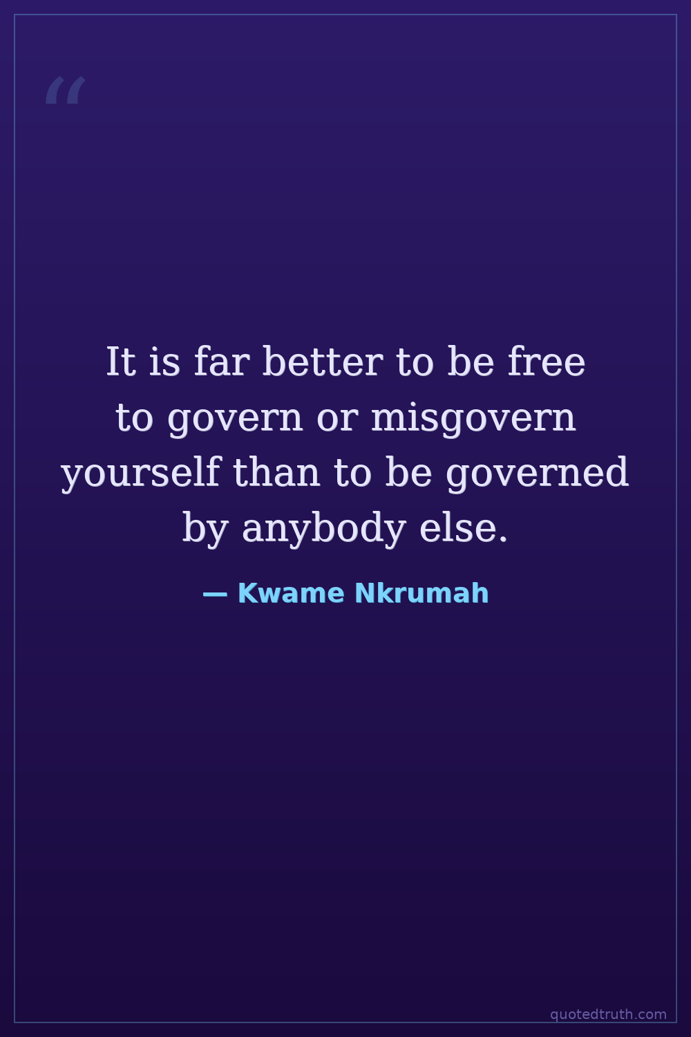 It is far better to be free to govern or misgovern yourself than to be governed by anybody else.