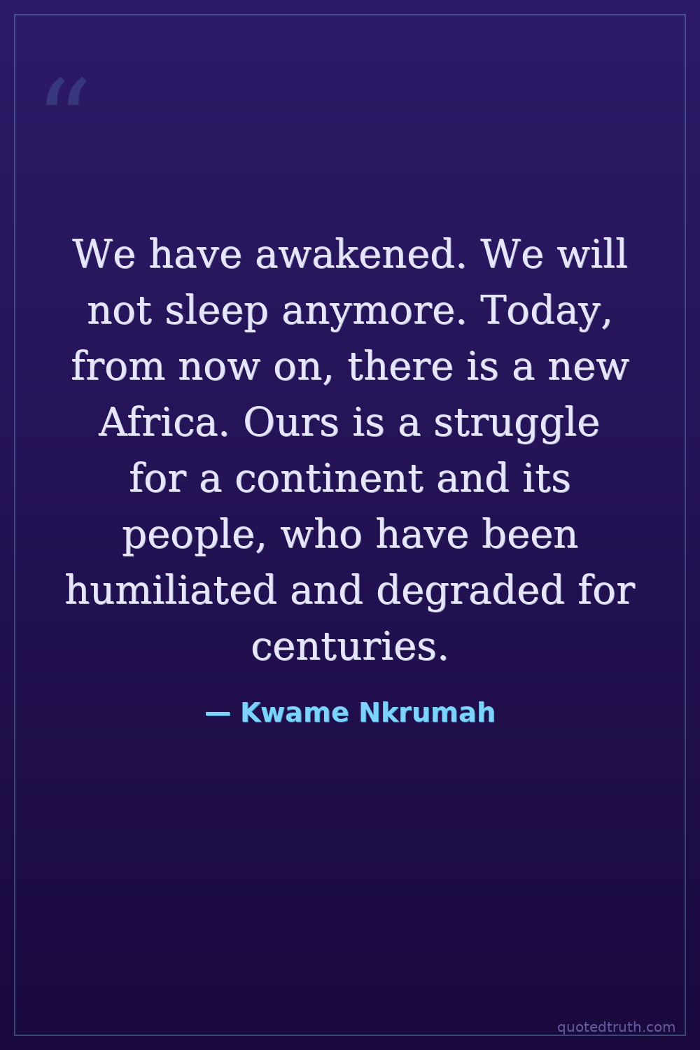 We have awakened. We will not sleep anymore. Today, from now on, there is a new Africa. Ours is a struggle for a continent and its people, who have been humiliated and degraded for centuries.