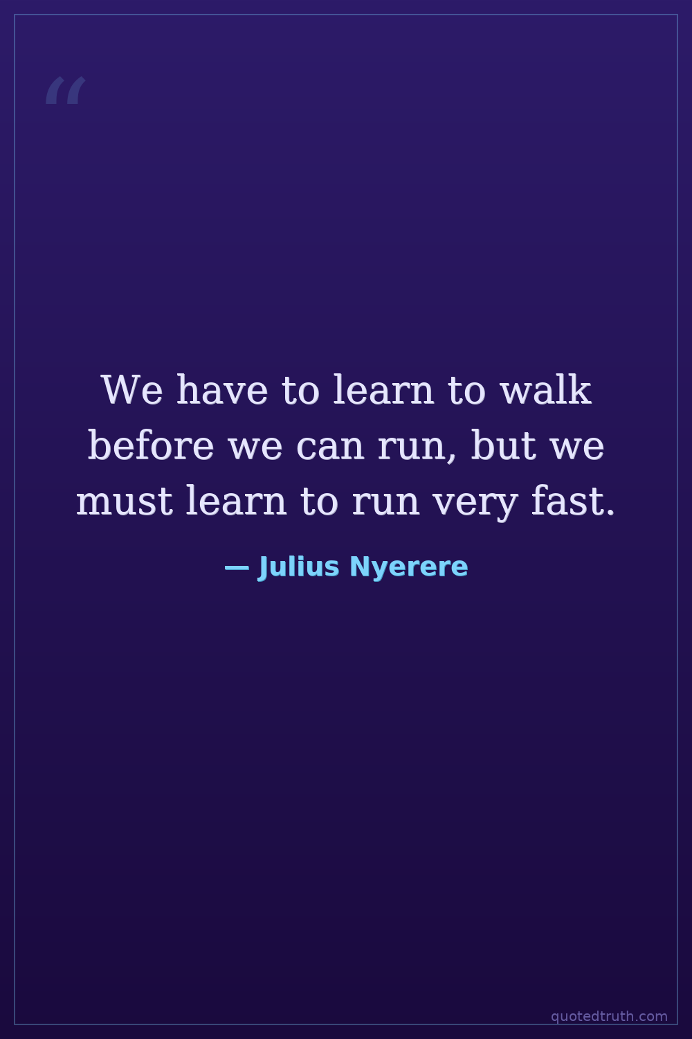 We have to learn to walk before we can run, but we must learn to run very fast.
