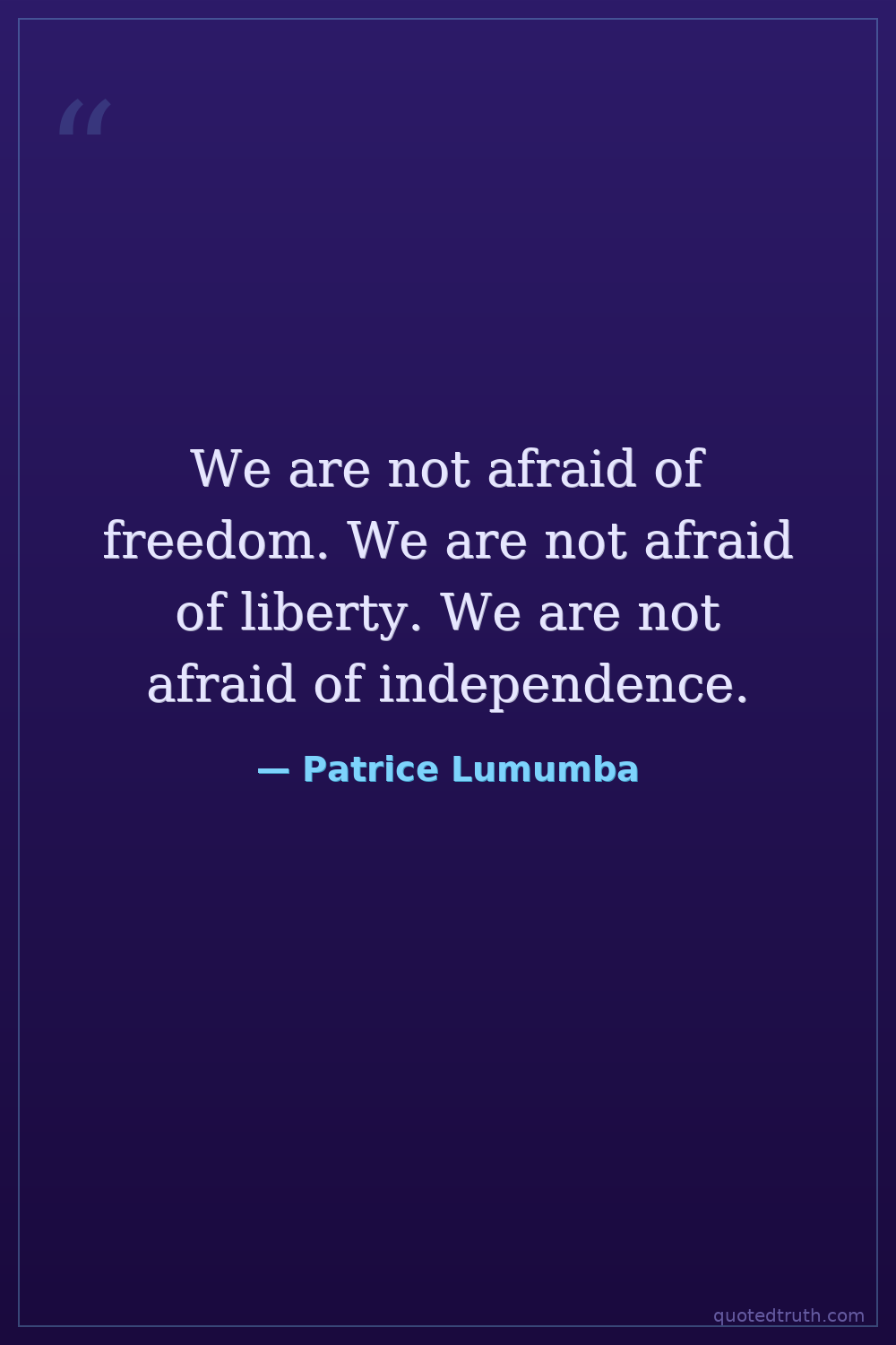 We are not afraid of freedom. We are not afraid of liberty. We are not afraid of independence.