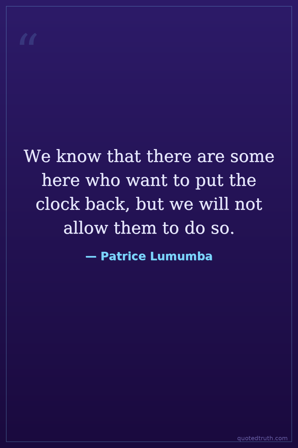 We know that there are some here who want to put the clock back, but we will not allow them to do so.