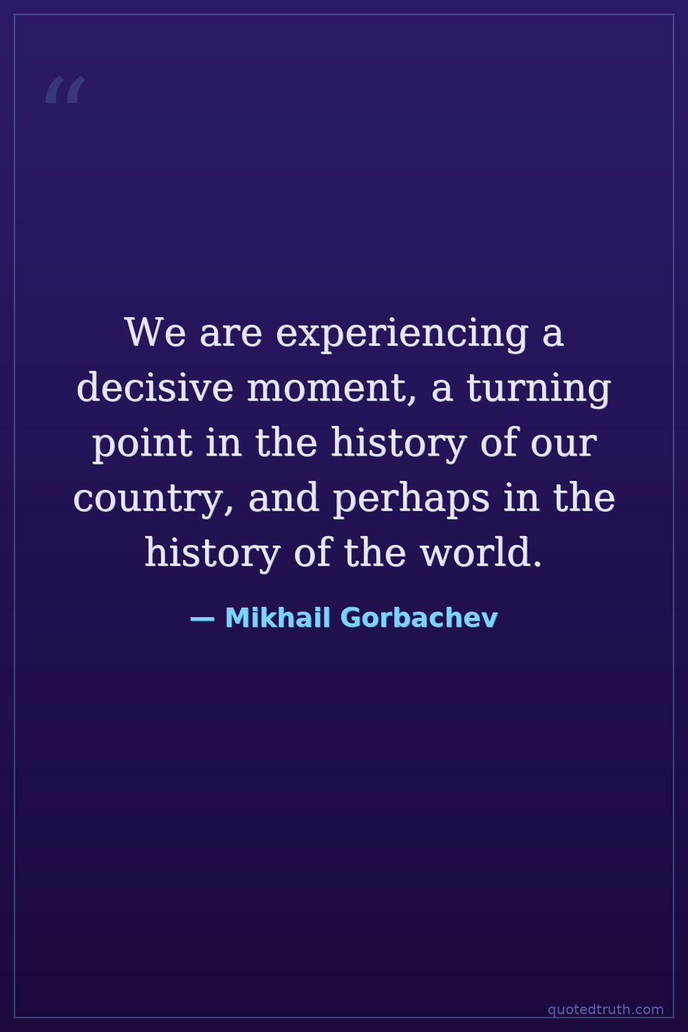 We are experiencing a decisive moment, a turning point in the history of our country, and perhaps in the history of the world.